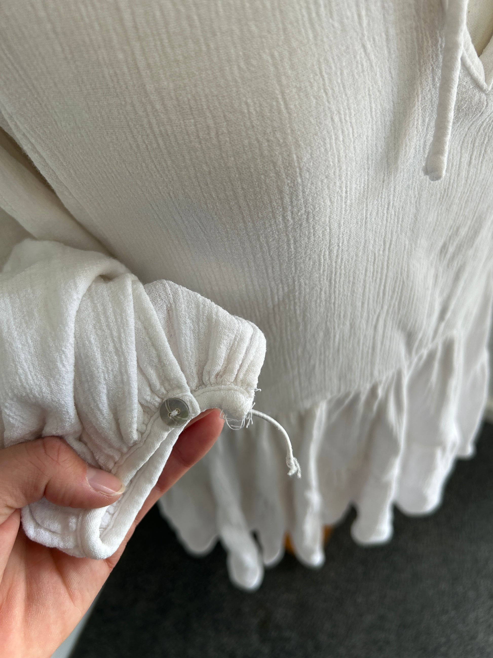 VGUC, dress itself is in mint condition but the hole for the wrist buttons have come apart, could be an easy fix up for someone who knows a thing or two about a needle and thread 🙈
